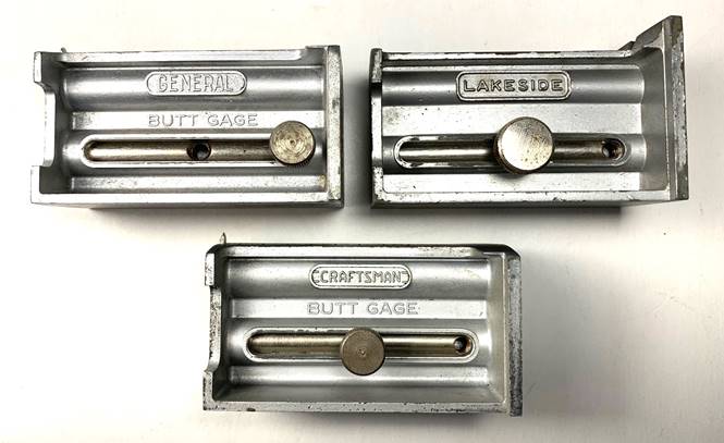 The General Hardware Mfg. Co., of New York City copied the Stanley style of butt gauges, making their own line as well as gauges for others, such as Montgomery Ward (Lakeside Brand) and Sears & Roebuck (Craftsman).  Shown in Photo 7.