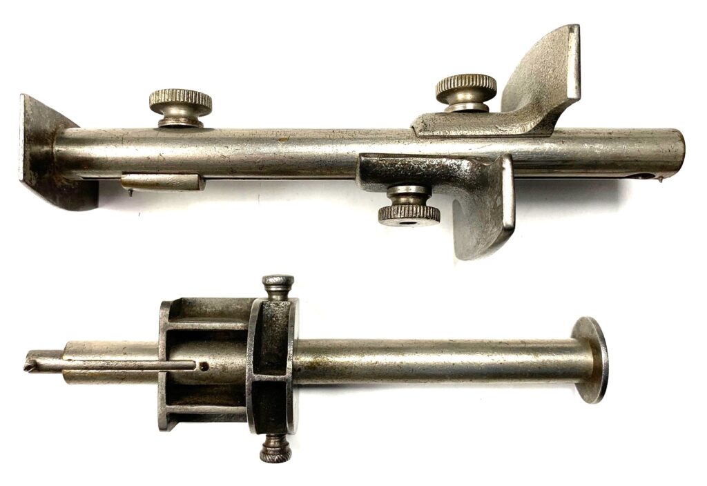 The same confusion happens when finding a George Thompson gauge, see the top of Photo 1.  It was patented October 2, 1900 and was never marked except for the same notation on some examples, “PAT. APPL’D FOR.” Many of us are left scratching our heads trying to identify them.  The Marden gauge shown here is trimmed with iron fittings rather than the more common brass fittings making this a rare variation.  The LeFrancois seems to be the rarest gauge of the group.   These three scarce gauges are very similar in appearance and function and are highly sought after by collectors.  All of these gauges look great on display and with a little familiarization can be readily identified.  I recommend Milt Bacheller’s book, “American Marking Gages Patented and Manufactured,” as the best source for identifying most of these tools.  Although out of print, copies of his book can often be found by a search of the internet.