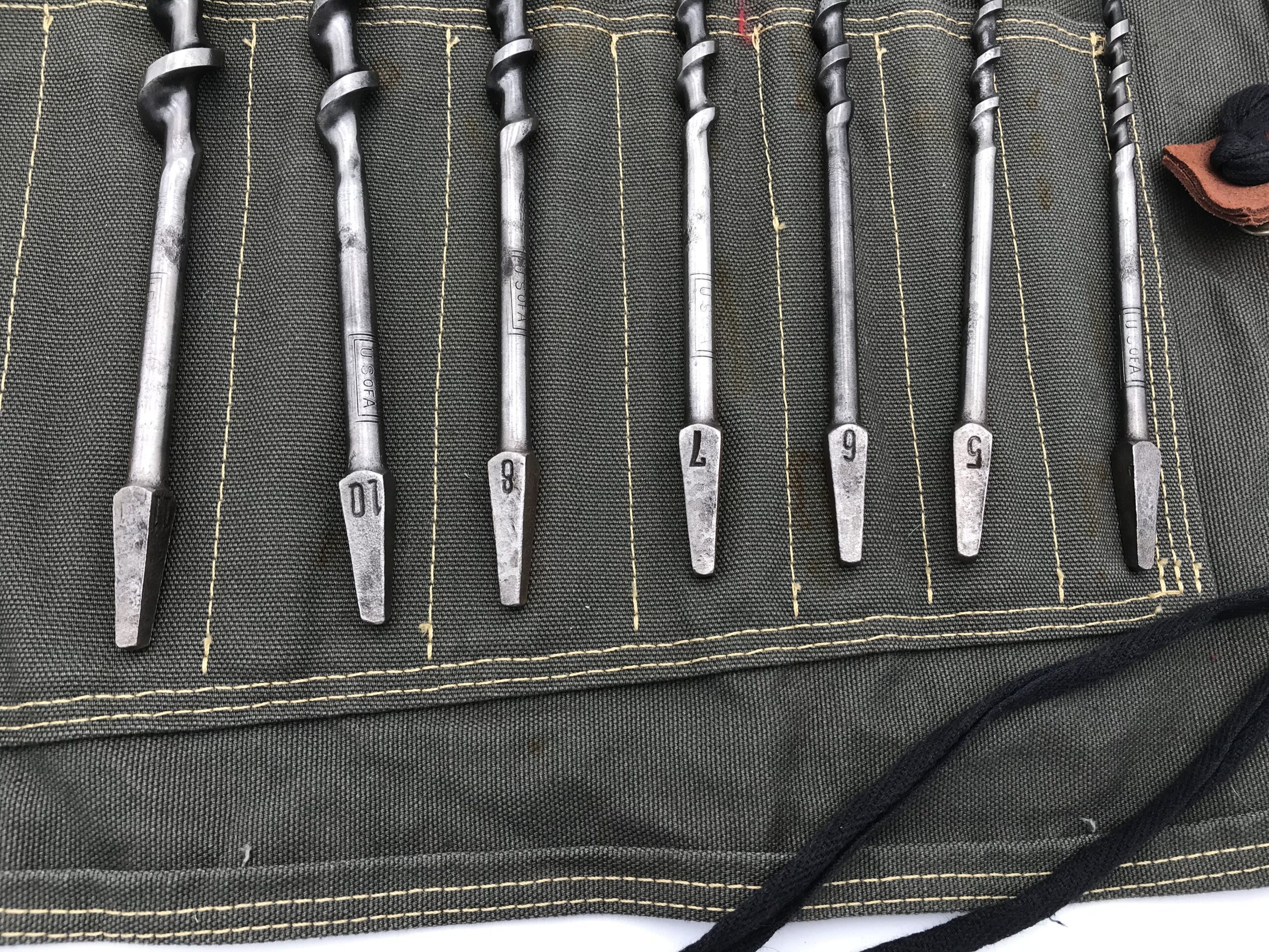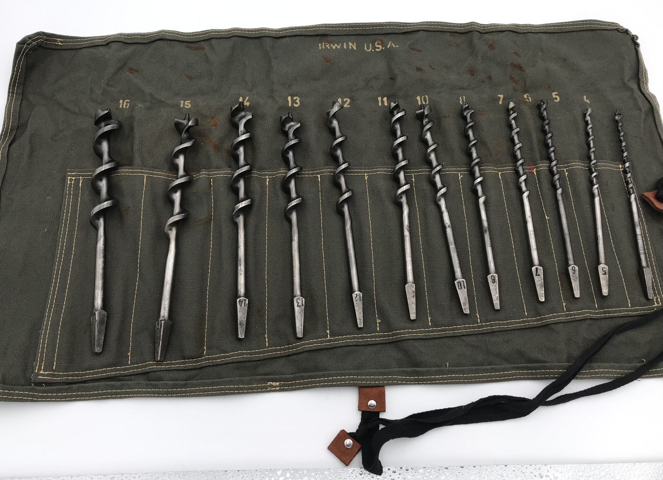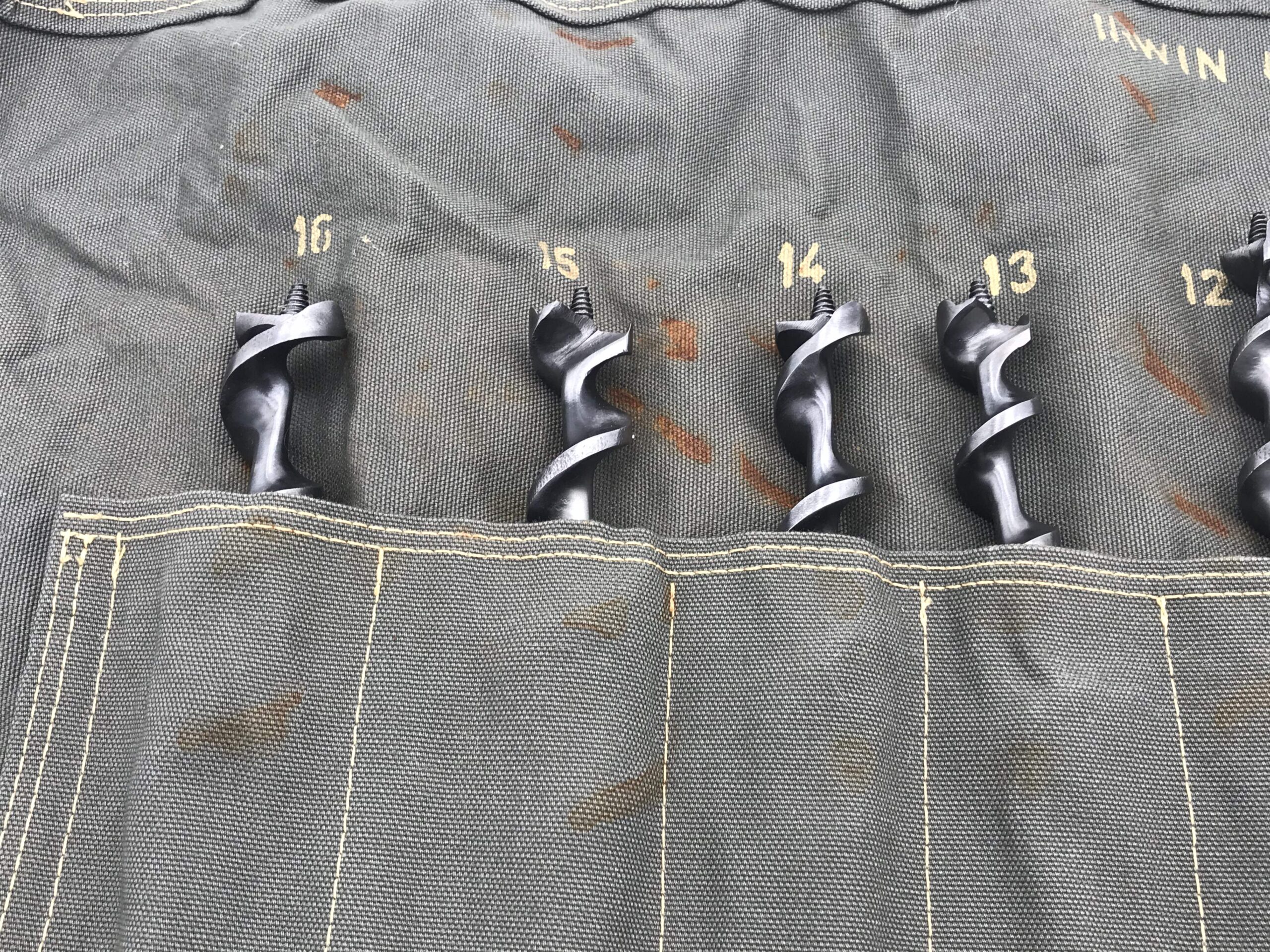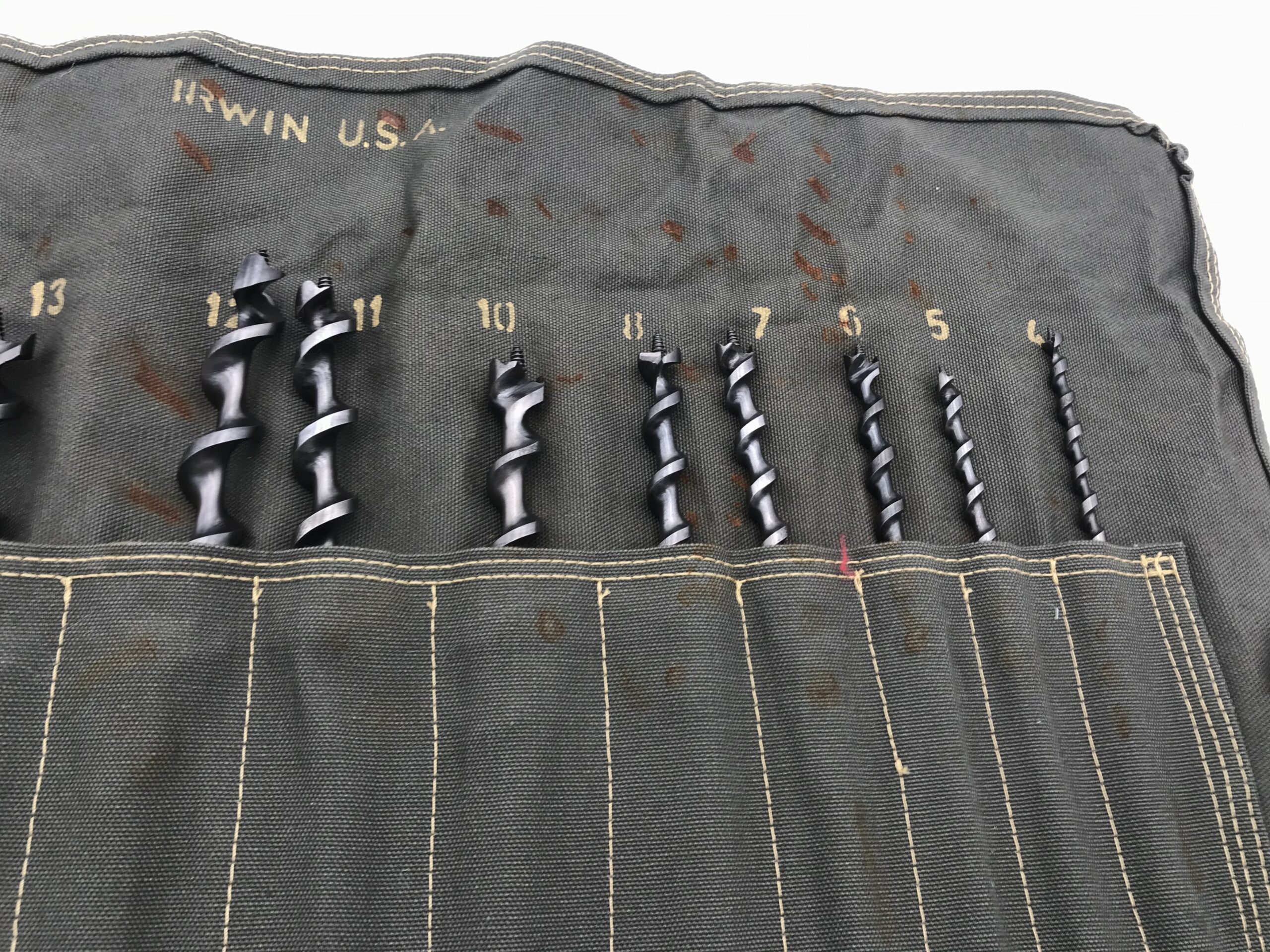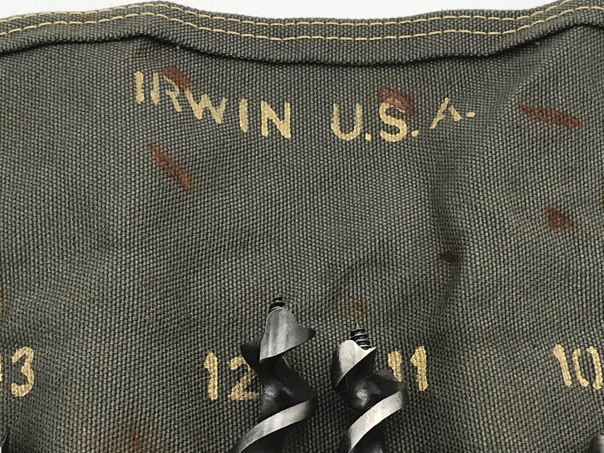 Irwin 12 piece drill bit set in military green canvas roll rare odd numbered sizes, excellence.