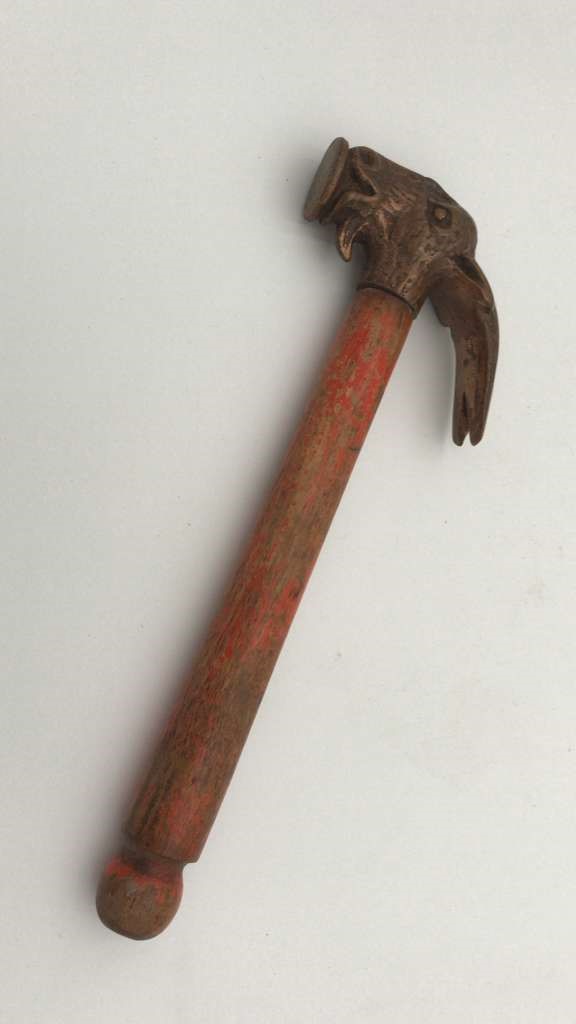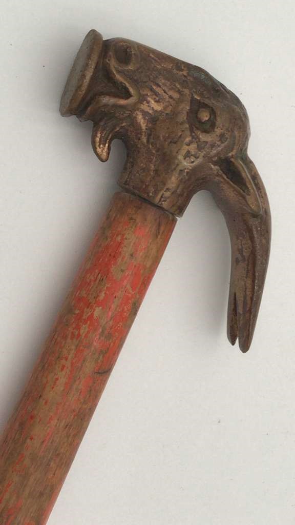 Mitteldorfer Straus patented Goat’s Head Hammer. 8 1/2” long. Bronze, original handle, all original