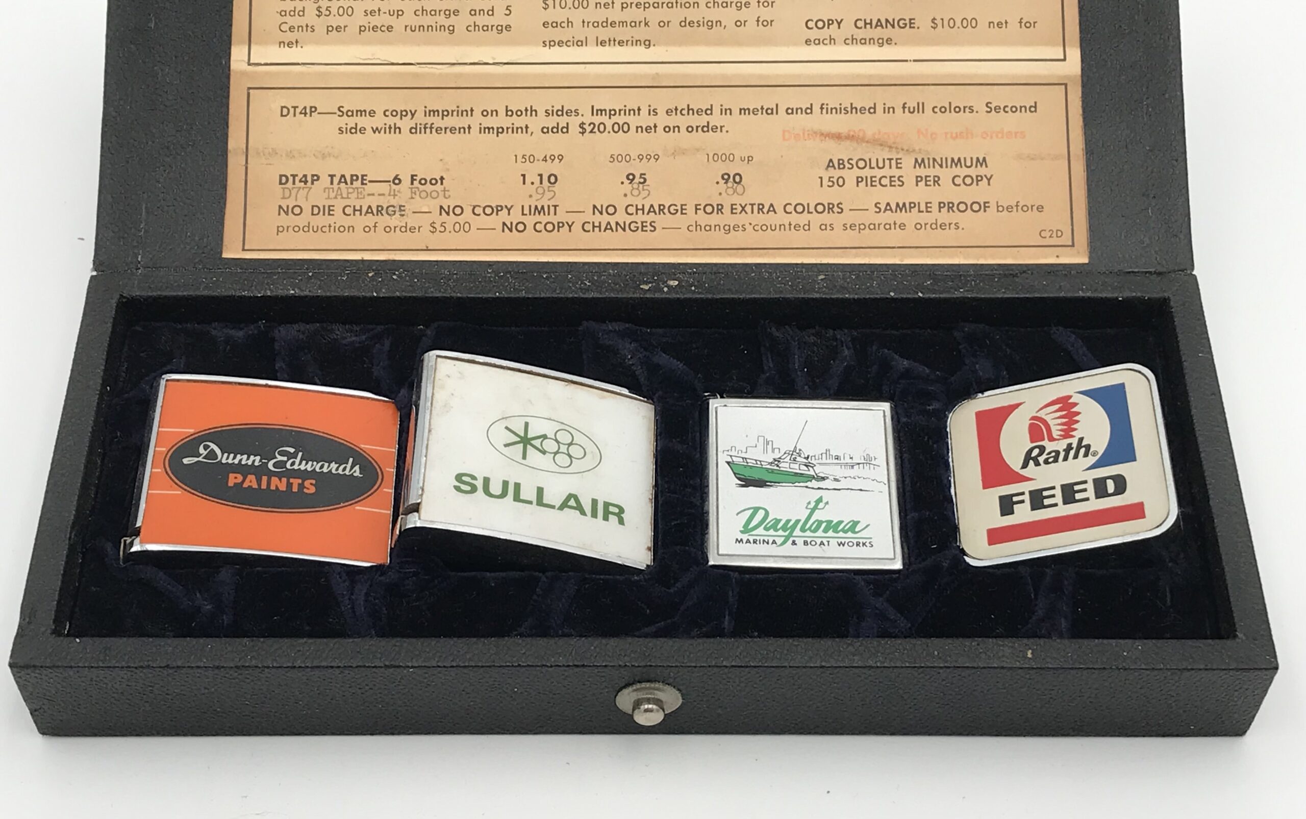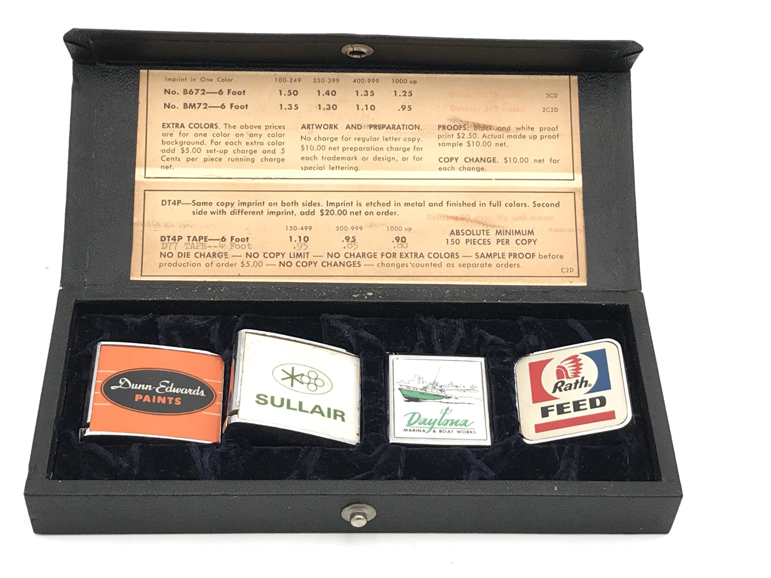 Barlow Salesman Sample case with four advertising tape; check out the prices!